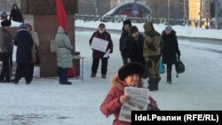 В Самаре сегодня минус 15. В акции приняло участие около двадцати человек, большинство из которых составляли пенсионеры. Как рассказали участники пикета корреспонденту "Idel.Реалии", эта традиционная акция протеста проводится тридцать первого числа каждого месяца.