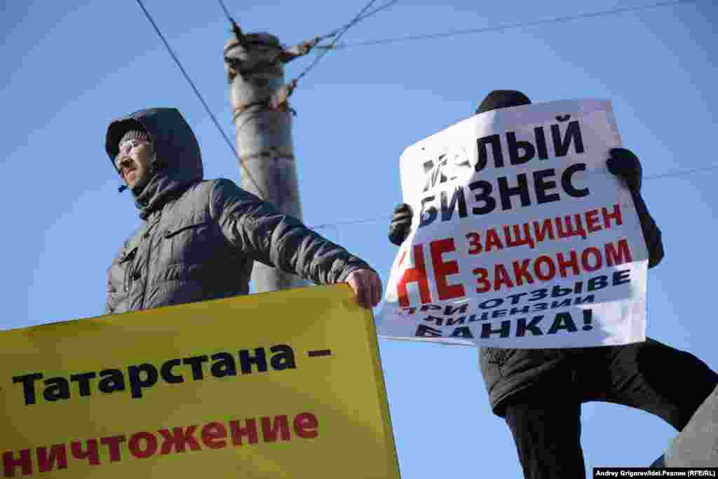 Участникам пикета предлагали подписать письма с уже отпечатанным текстом: наказ избирателя депутатам Госсовета Татарстана, обращение в Владимиру Путину и заявление о привлечении премьер-министра Татарстана и председателя совета директоров Татфондбанка к уголовной ответственности, адресованное силовым ведомствам. Заполненные бланки собирали в розовую коробку.