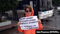 В итоге, едва ли не единственным человеком, вышедшим 3 августа на одиночный пикет в поддержку московских протестов, стала волонтер уфимского штаба Навального Ольга Комлева. Активистка вышла на одну из центральных улиц Уфы с плакатом “Путин, уходи! Хабиров, уходи! ЕдРосы, уходите! На выборах ни голоса ЕдРосам!” О том, как прошла акция, Ольга Комлева рассказала “Idel.Реалии”.