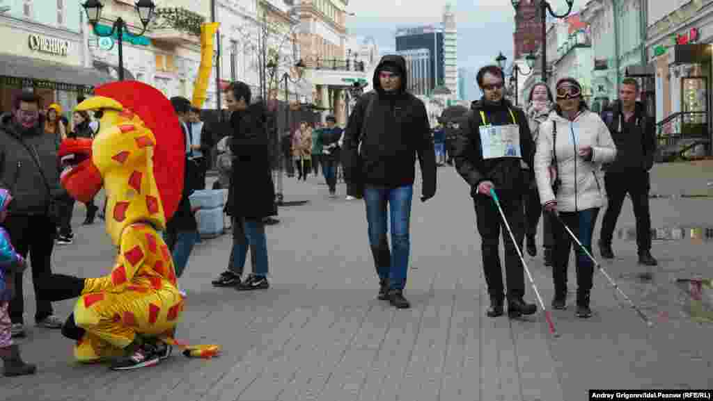 15 октября по всему миру отмечают День белой трости (в оригинале — White Cane Safety Day). Не как повод для веселья, как повод обратить внимание на трудности слепых людей. Казанские волонтеры из инициативной группы "Другие люди" уже третий год собираются на пешеходной Баумана и предлагают прохожим стать участниками необычного эксперимента.