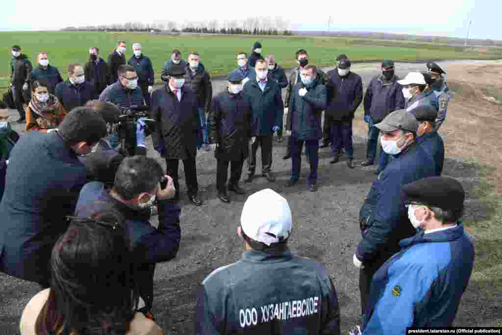 Все кадры сделаны во время поездок президента РТ Рустама Минниханова в сельские районы в апреле 2020 года, когда в Татарстане уже действовал режим строгой "самоизоляции".